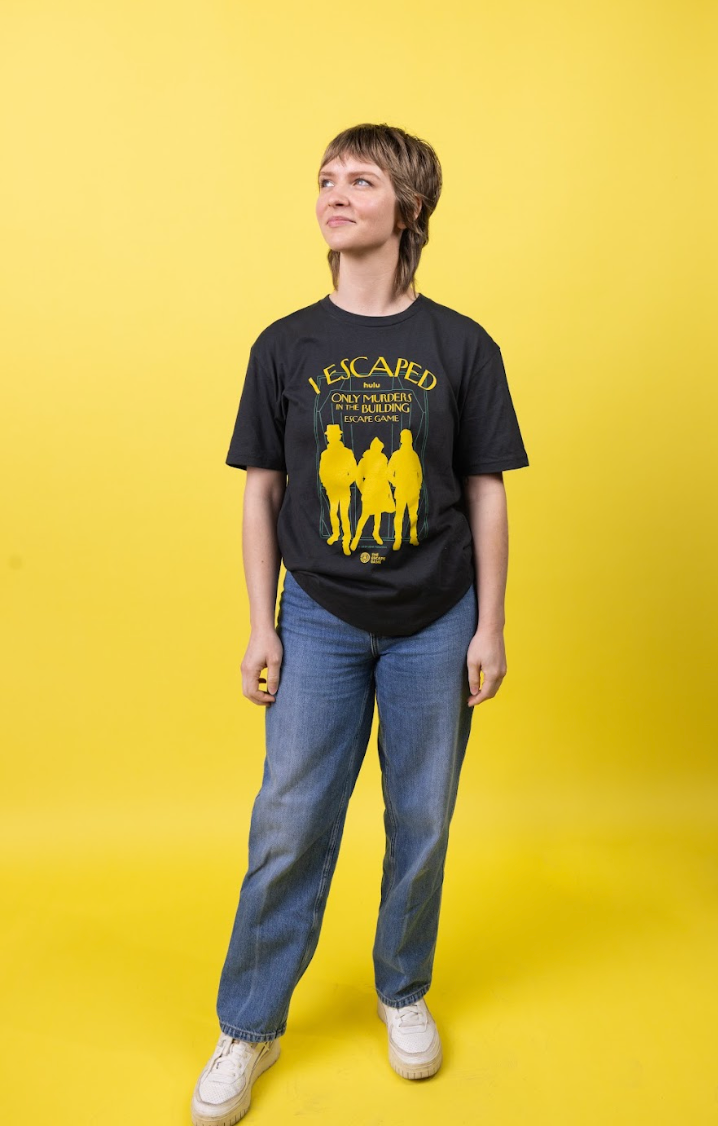 Show off your love for murder mystery with the exclusive shirt celebrating our Only Murders in the Building escape game!